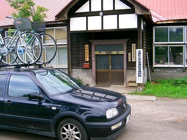 自動車の上に、自転車2台、後ろに折りたたみ自転車1台をつんでいざ出発。
